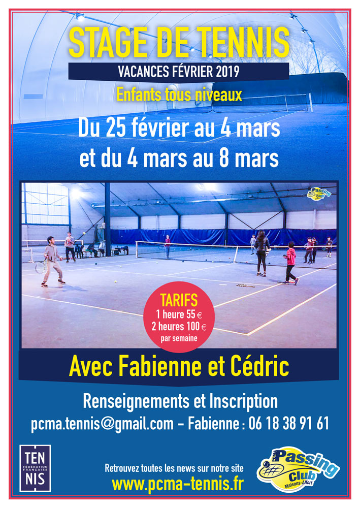 Stages vacances février 2019 par Vincent Marzolf | Fév 11, 2019 | 03 Stage, formation,tounoi | 0 commentaires LES VACANCES ARRIVENT BIENTÔT.. Toujours autant de succès les stages pendant les vacances, inscrivez vite vos enfants. pcma.tennis@gmail.com ou Fabienne au 06 18 38 91 61. Poster le commentaire Annuler la réponseVotre adresse e-mail ne sera pas publiée. Les champs obligatoires sont indiqués avec *Commentaire * Nom * E-mail * Site web Current ye@r * Leave this field empty