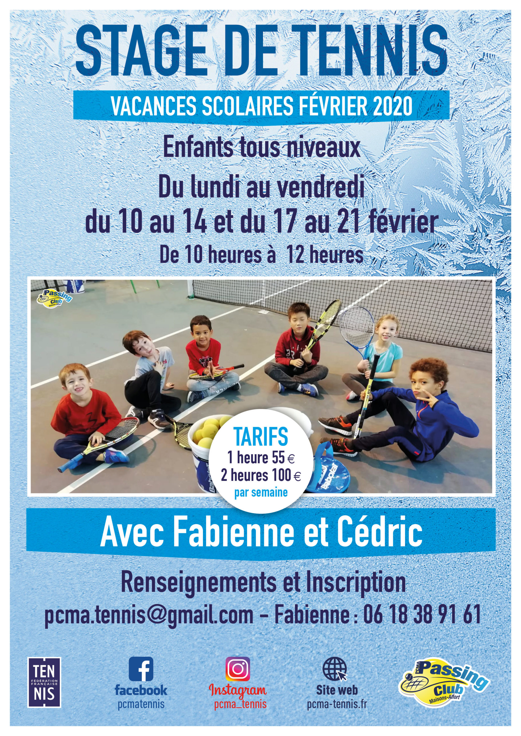Stages vacances Février par Vincent Marzolf | Jan 30, 2020 | 01 News 2019, 01 News 2020 | 0 commentaires Le PCMA organise des stages de tennis pour les enfants (tous niveaux) durant les vacances de février – renseignez-vous ! Poster le commentaire Annuler la réponseVotre adresse e-mail ne sera pas publiée. Les champs obligatoires sont indiqués avec *Commentaire * Nom * E-mail * Site web Current ye@r * Leave this field empty